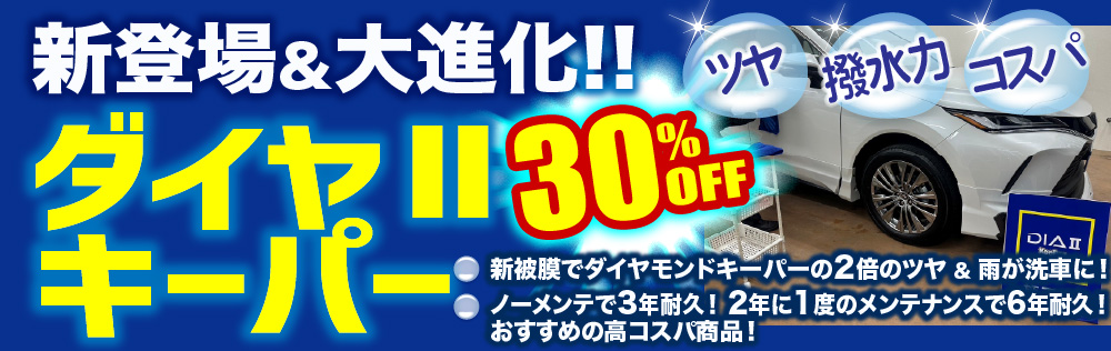 ※人気でおすすめのコーティングメニューは、ダイヤモンドキーパー、エコダイヤキーパーです。各コーティングメニューの特徴やサイズ毎の料金はこちら。