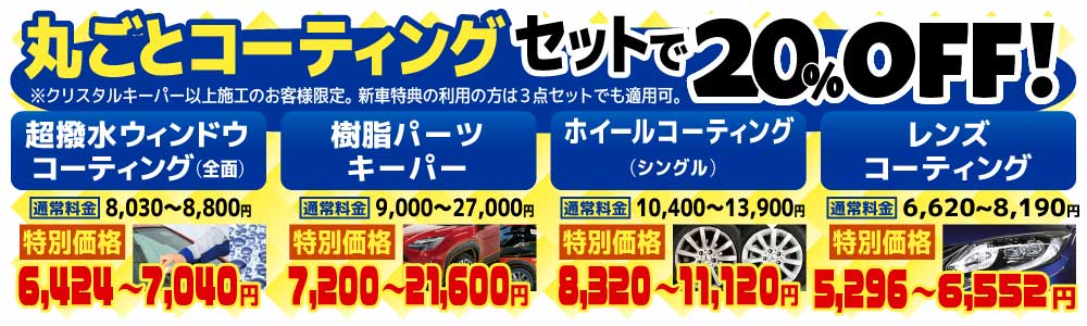 丸ごとコーティングセット(対象メニューが20%OFF!)